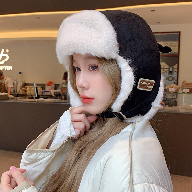 Autumn and winter new girls Lei Feng hat plush warm ear cap riding hat strap buckle simple fashion warm and comfortable