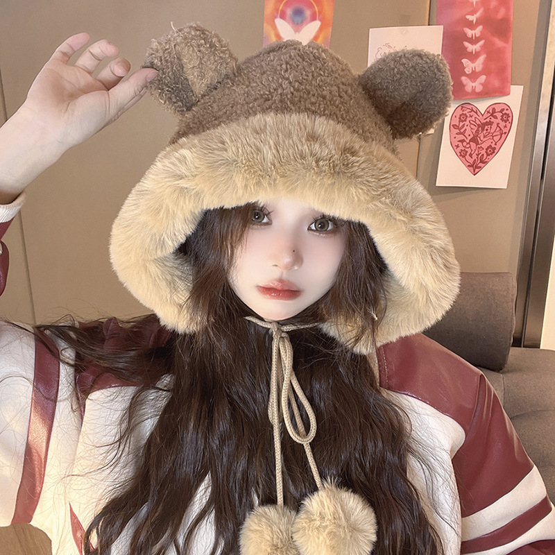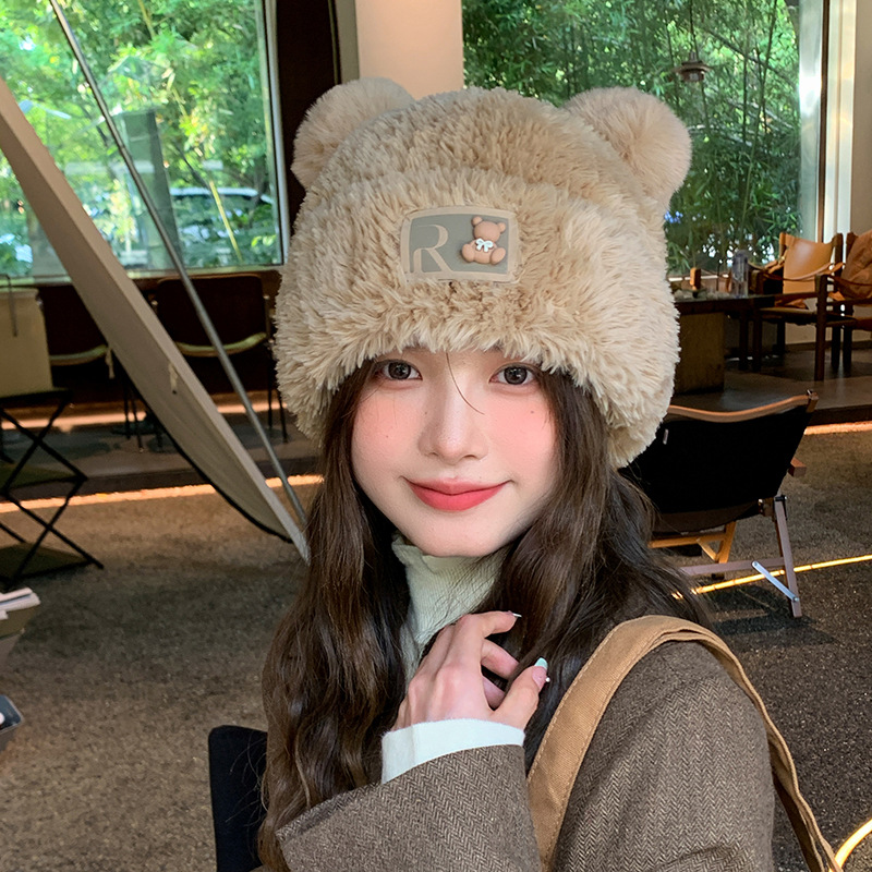 Autumn/Winter Day cute knit Bear hat Ladies outdoor plush warm ear cap Cartoon bear hat